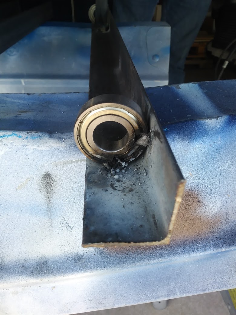 Now we’re ready to start welding.  I welded a bearing to an iron material and while it is not the most clean welding job the bearing is welded well and it even retained its rotation.  I used the bearing R12-ZZC PS2 found here https://www.bocabearings.com/products/r12-zzc-ps2-513 If, you want to know more about why Boca bearings are different read this article here https://www.bocabearings.com/fishing-reel-bearing-tips-advice/do-boca-bearings-really-make-a-difference