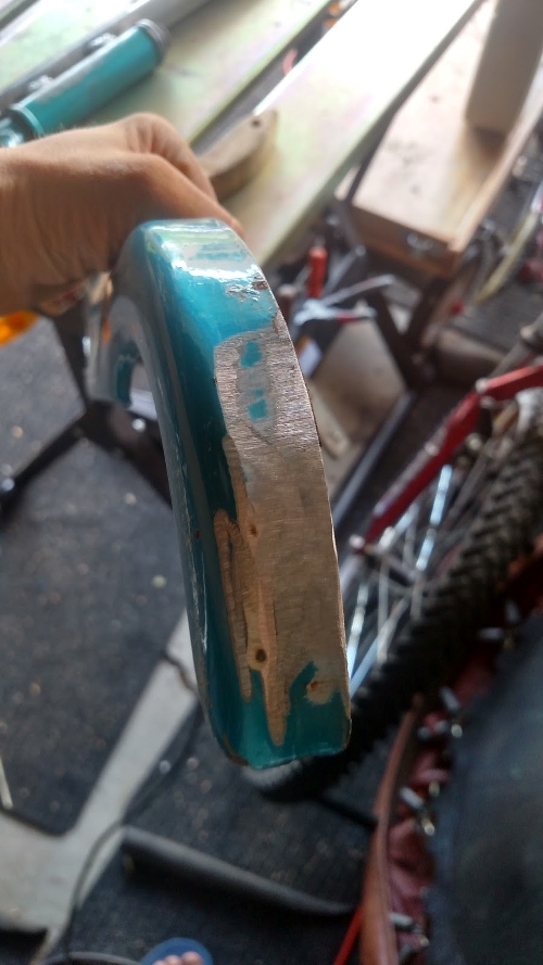 Finish was determined and installed (green vinyl with blue accents to give a flower like appearance of (I like forget me nots and will likely color the hub yellow in the future). The green vinyl was a fun pickup. I thought about going with something more natural but decided for a more distinct color combination. I initially tried to use saran wrap for the blades on the spokes but then went with sections of vinyl. I applied all of the vinyl in sections to make it easier to apply. This was much less time consuming than painting. All parts had been previously cleaned for welding so prep was fairly minimal except for cleaning the welds and heat affected zone/additional spatter.