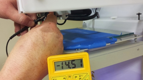 Once we got the X/Y/Z motion working again, it was on to the problem of the extruder nozzle (known as the "hot end") not heating up. I wasn't sure if the problem was the hot end itself, or some other problem. The temperature sensor was working, and was showing the correct temperature. I unplugged the heater leads and confirmed that there was voltage going to the hot end, so that had to be the problem.