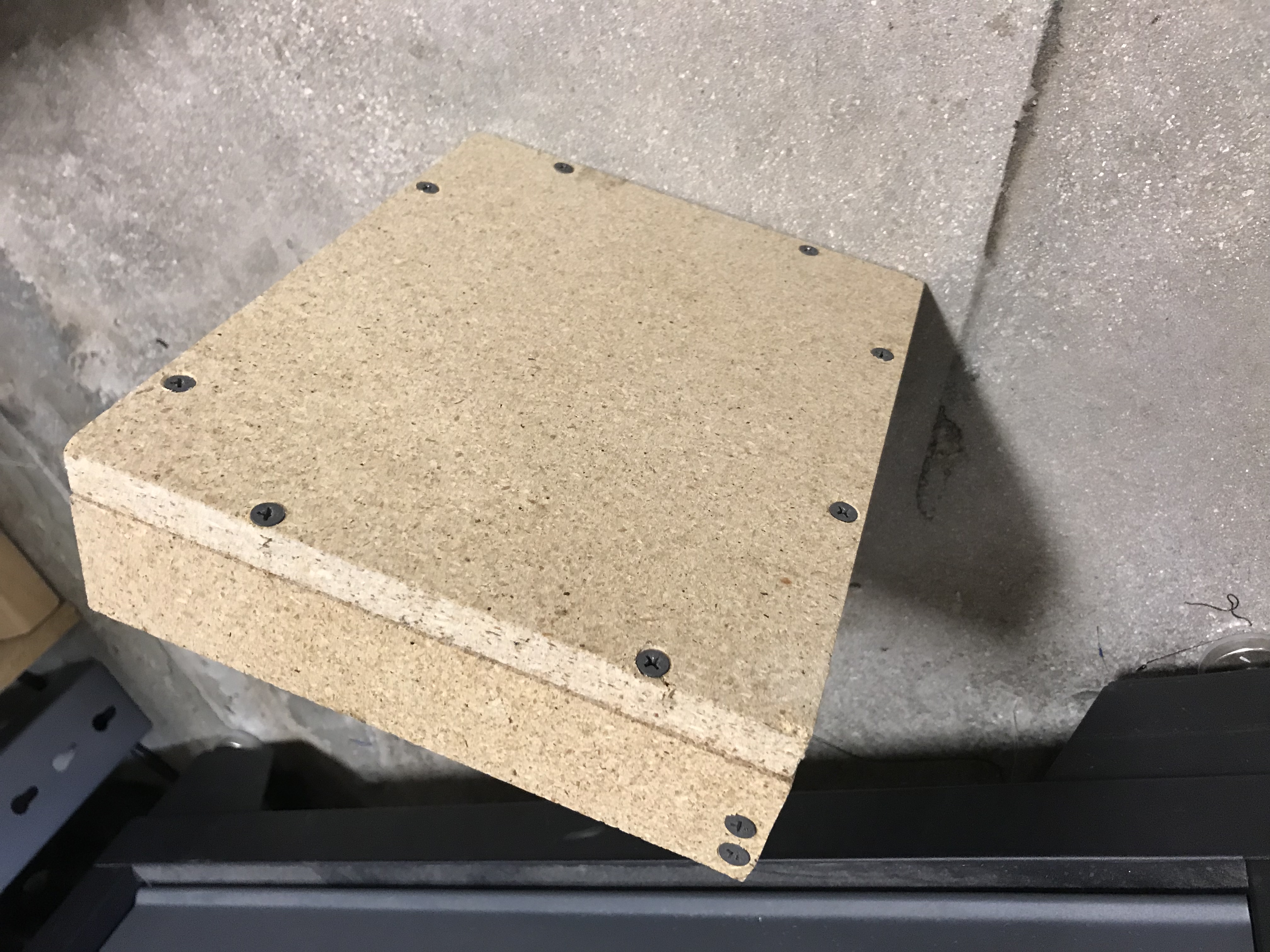 I screwed together the body (as seen below), but left off the back as I will use a hinge to allow for electronic manipulations. I need to cut holes in the bottom in order to allow for the wires to reach the motors at the base.