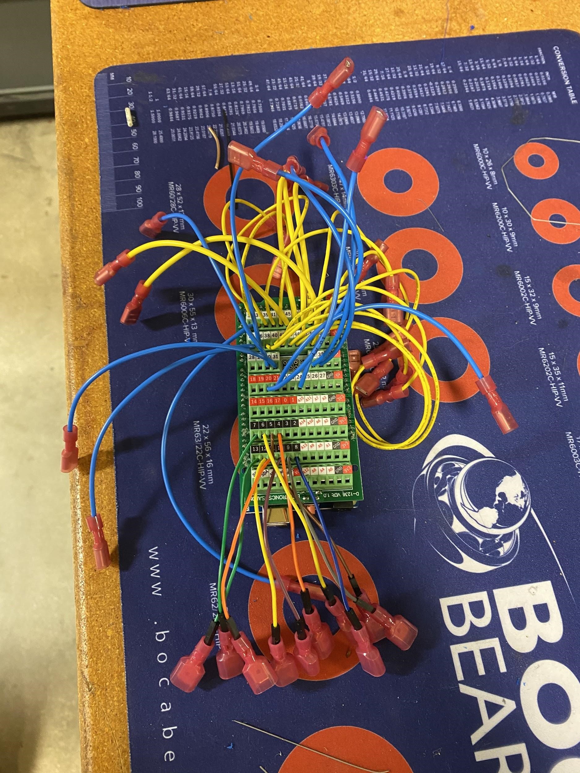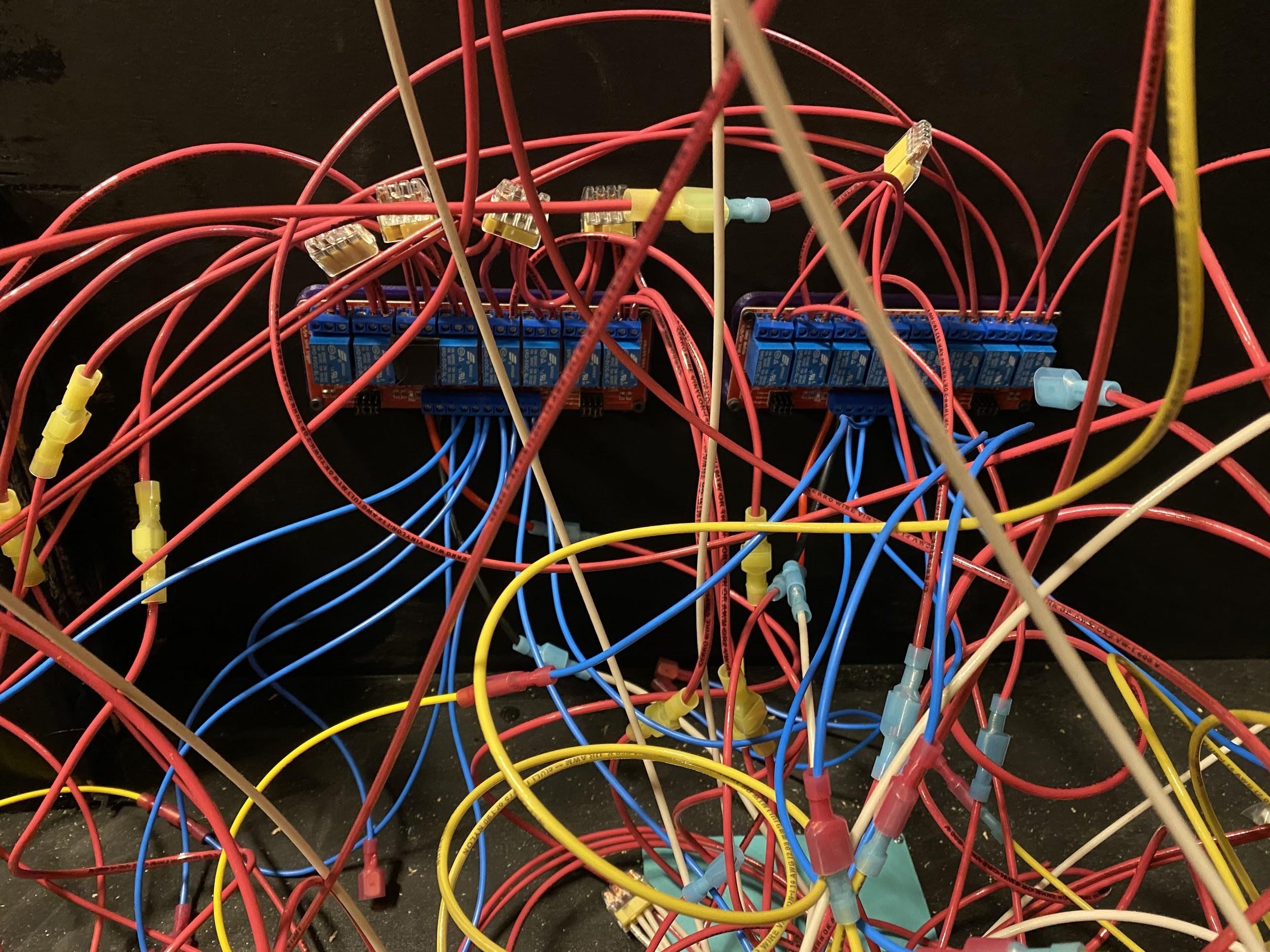 After coming to the conclusion that a score board would not be viable, I wired up all the electrical components and the input devices to their respective relays. This makes the system a fully analog system where if you press a button it trips the relay and flips on the respective device. As soon as the button or switch is released the relay will flip right back to its open state resetting the device. This is a much simpler system then what a score board would require as It would have relied on the button sending a signal to the arduino and then the arduino counting how many points that signal was worth and then throwing the signal over to the relays to trigger them. While this would have allowed some really cool stuff to be done in the code, it does make it a lot harder from an electrical stand point. And that electrical complexity is why this rout was forgone in favor of the analog system that was implemented.