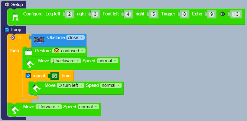 Upon receiving this kit, I was informed that the OTTO robot did not work outside of its USB port connection. For example, the OTTO DIY Robot has a USB connection that gives it the ability to import code into an Arduino circuit Board, once properly connected to a computer or laptop. The obstacle I was given was that the robot was unable to operate off its push button system controlled by 4 AA batteries. With this being said my first step was to change out the batteries to see if they were dead. In doing so, I found this was not the problem. My next thought was that the code may be the issue, so I installed OTTO BLOCKLY which is a free open-source programming engagement designed to make coding for the OTTO DIY Robot plain and simple. Once installed, I connected the Robot to the proper serial port and imported three different kinds of sample code given in the program. The first was a simple leg calibration to make sure the robot could walk properly, the second was a walking function, and the third was code to make the robot avoid obstacles when walking.